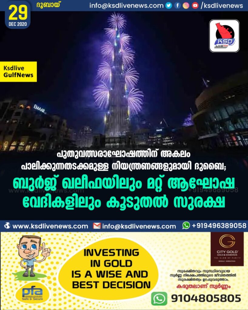 പുതുവത്സരാഘോഷത്തിന് അകലം പാലിക്കുന്നതടക്കമുള്ള നിയന്ത്രണങ്ങളുമായി ദുബൈ ; ബുർജ് ഖലീഫയിലും മറ്റ് ആഘോഷ വേദികളിലും കൂടുതൽ സുരക്ഷ