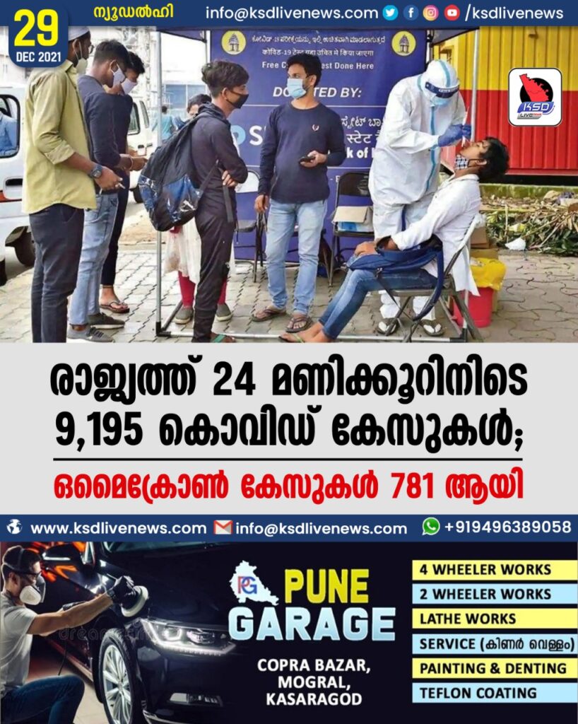 രാജ്യത്ത് 24 മണിക്കൂറിനിടെ 9,195 കൊവിഡ് കേസുകൾ; ഒമൈക്രോൺ കേസുകൾ 781 ആയി