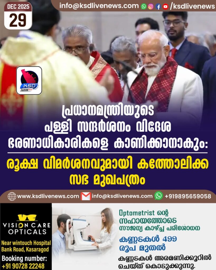 പ്രധാനമന്ത്രിയുടെ പള്ളി സന്ദര്‍ശനം വിദേശ ഭരണാധികാരികളെ കാണിക്കാനാകും: രൂക്ഷ വിമര്‍ശനവുമായി കത്തോലിക്ക സഭ മുഖപത്രം