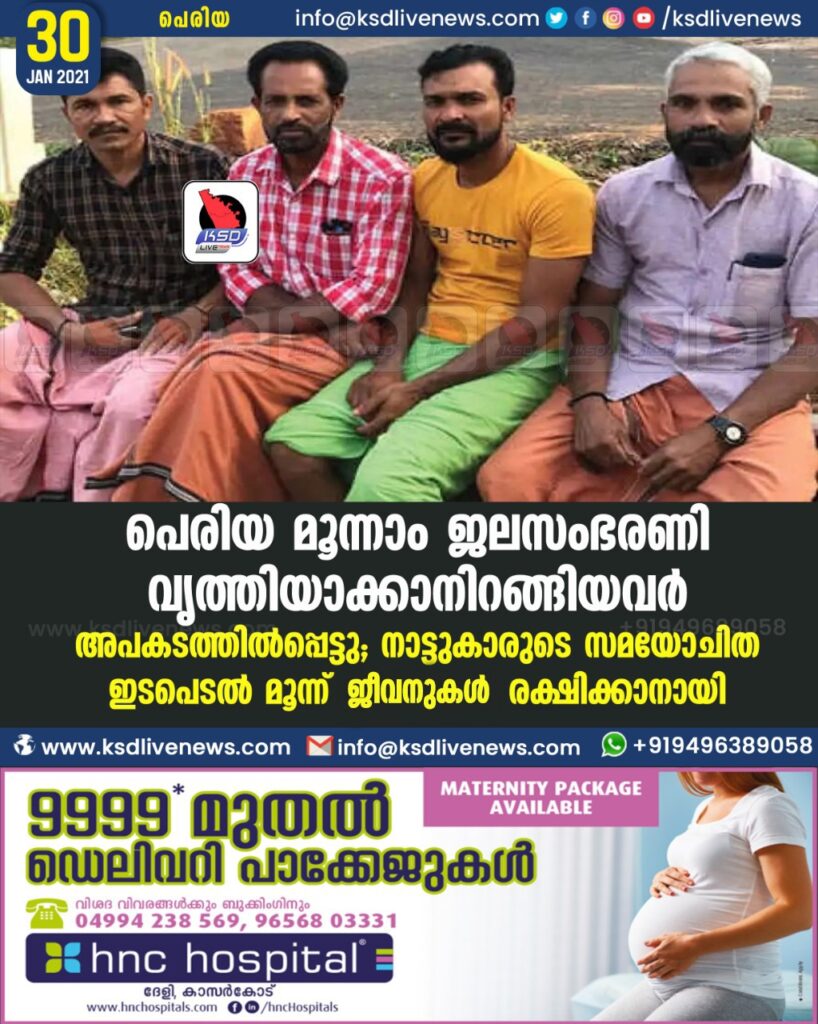 പെരിയ മൂന്നാം ജലസംഭരണി വൃത്തിയാക്കാനിറങ്ങിയവർ അപകടത്തിൽപ്പെട്ടു; നാട്ടുകാരുടെ സമയോചിത ഇടപെടൽ മൂന്ന് ജീവനുകൾ രക്ഷിക്കാനായി