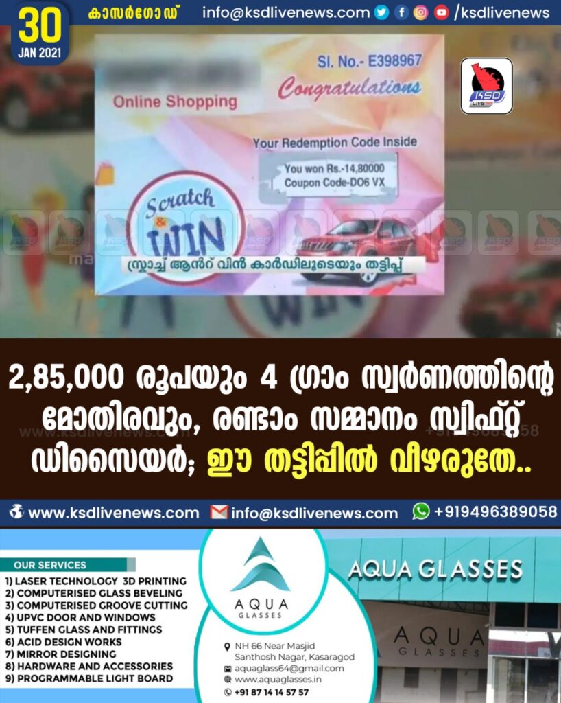 2,85,000 രൂപയും 4 ഗ്രാം സ്വർണത്തിന്റെ മോതിരവും, രണ്ടാം സമ്മാനം സ്വിഫ്റ്റ് ഡിസൈയർ; ഈ തട്ടിപ്പിൽ വീഴരു…