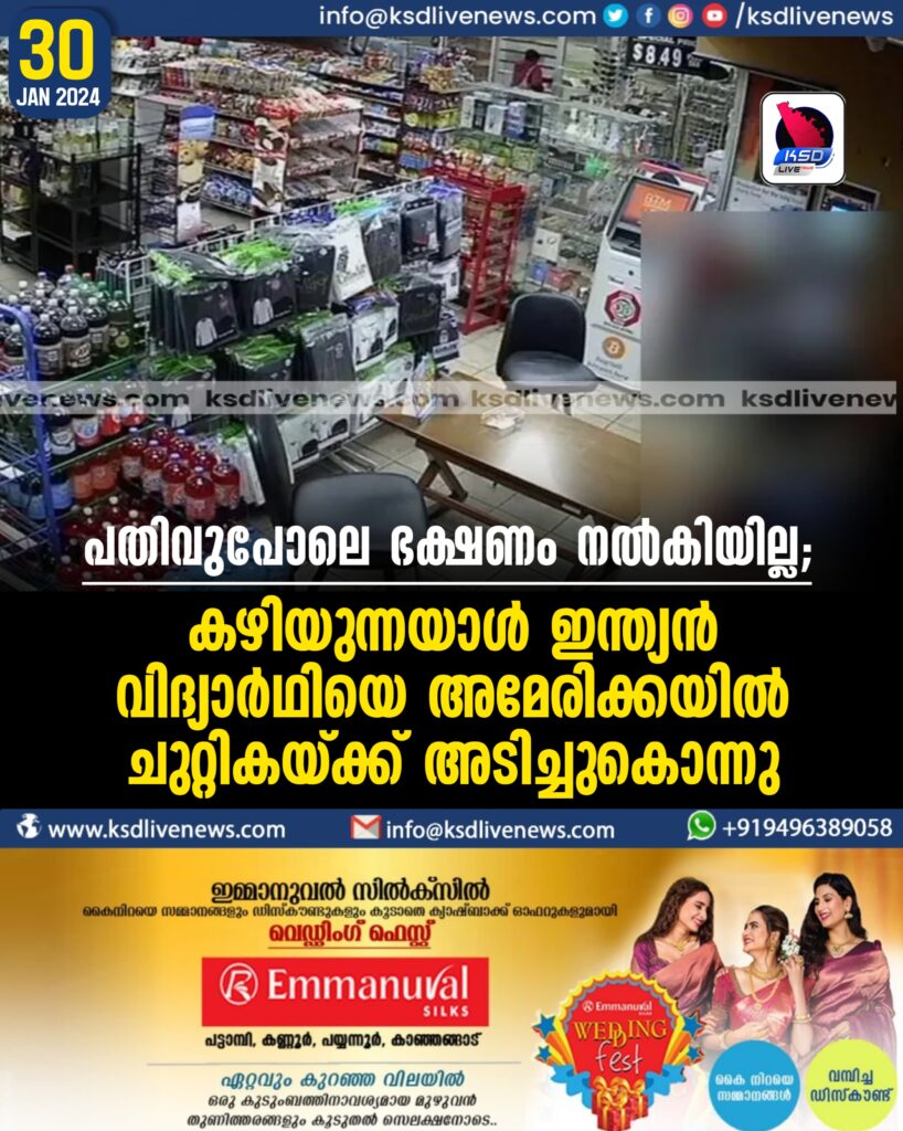 പതിവുപോലെ ഭക്ഷണം നൽകിയില്ല; തെരുവിൽ കഴിയുന്നയാൾ ഇന്ത്യൻ വിദ്യാർഥിയെ അമേരിക്കയിൽ ചുറ്റികയ്ക്ക് അടിച്ചുകൊന്നു