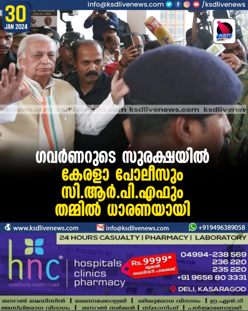 ഗവര്‍ണറുടെ സുരക്ഷയിൽ കേരളാ പോലീസും സി.ആര്‍.പി.എഫും തമ്മില്‍ ധാരണയായി