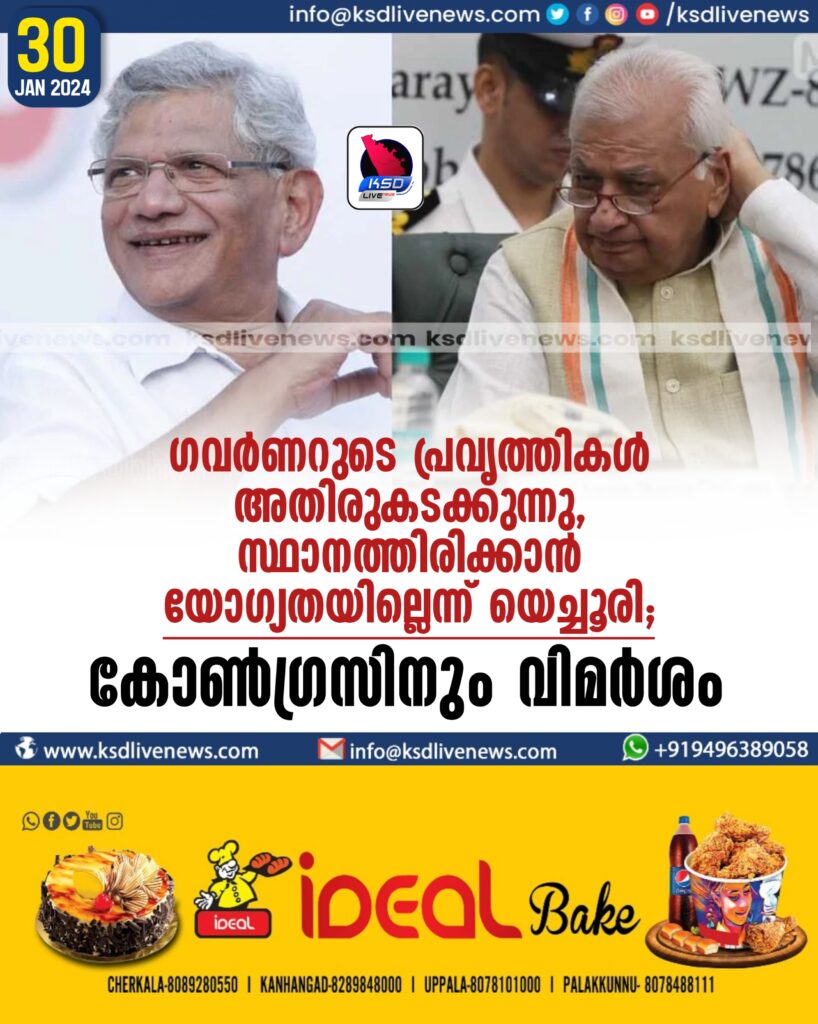 ഗവർണറുടെ പ്രവൃത്തികൾ അതിരുകടക്കുന്നു, സ്ഥാനത്തിരിക്കാൻ യോഗ്യതയില്ലെന്ന് യെച്ചൂരി; കോൺഗ്രസിനും വിമർശം