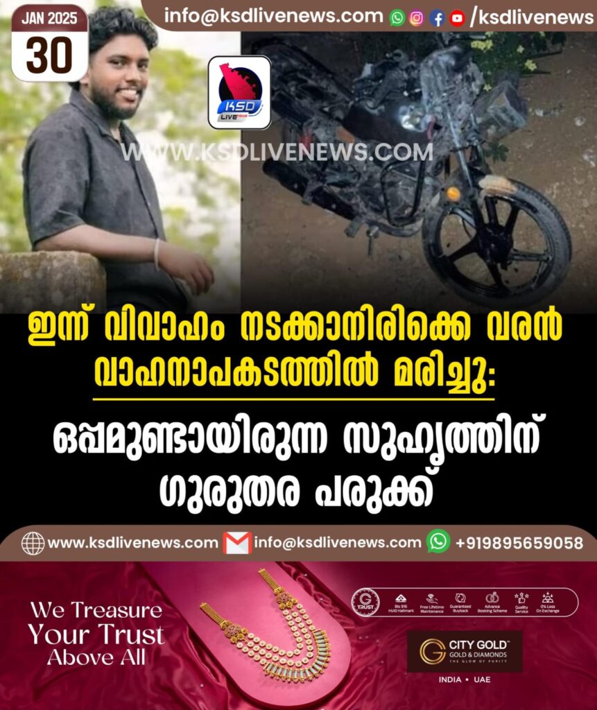 ഇന്ന് വിവാഹം നടക്കാനിരിക്കെ വരൻ വാഹനാപകടത്തിൽ മരിച്ചു; ഒപ്പമുണ്ടായിരുന്ന സുഹൃത്തിന് ഗുരുതര പരുക്ക്