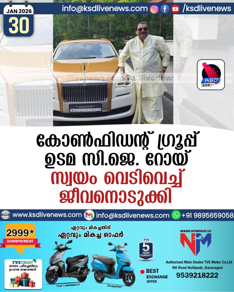 കോൺഫിഡന്റ് ഗ്രൂപ്പ് ഉടമ സി.ജെ. റോയ് സ്വയം വെടിവെച്ച് ജീവനൊടുക്കി
