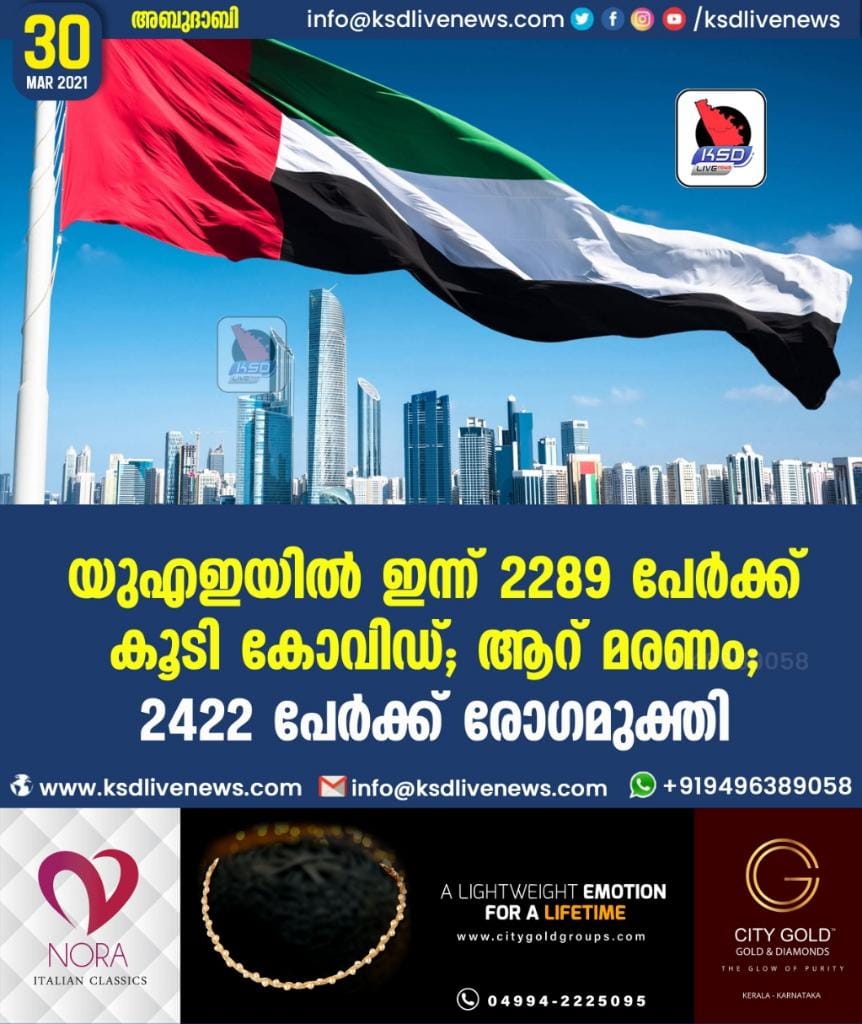 യുഎഇയില് ഇന്ന് 2289 പേര്ക്ക് കൂടി കോവിഡ്; ആറ് മരണം; 2422 പേര്ക്ക് രോഗമുക്തി