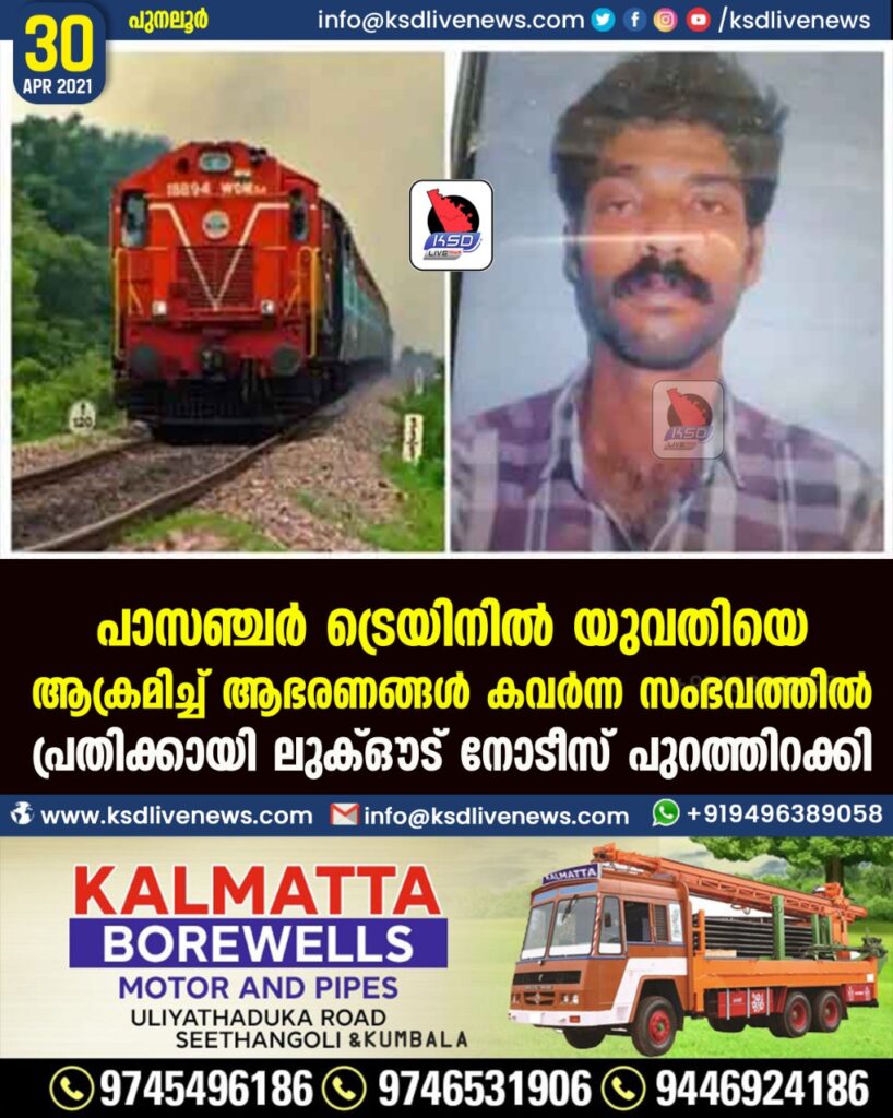 പാസഞ്ചര് ട്രെയിനില് യുവതിയെ ആക്രമിച്ച് ആഭരണങ്ങള് കവര്ന്ന സംഭവത്തില് പ്രതിക്കായി ലുക്ഔട് നോടീസ് പുറത്തിറക്കി