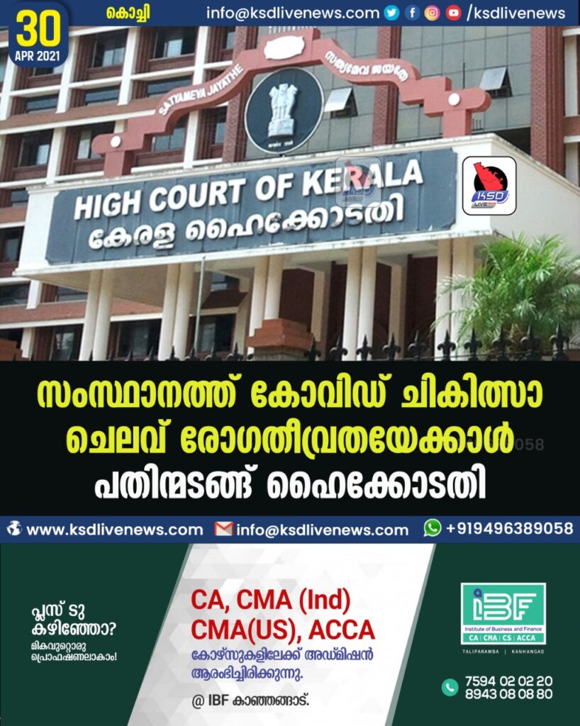 സംസ്ഥാനത്ത് കോവിഡ് ചികിത്സാ ചെലവ് രോഗതീവ്രതയേക്കാള് പതിന്മടങ്ങ്- ഹൈക്കോടതി