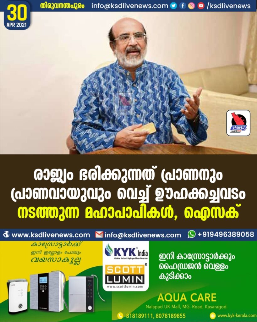 രാജ്യം ഭരിക്കുന്നത് പ്രാണനും പ്രാണവായുവും വെച്ച് ഊഹക്കച്ചവടം നടത്തുന്ന മഹാപാപികള്‍ – ഐസക്