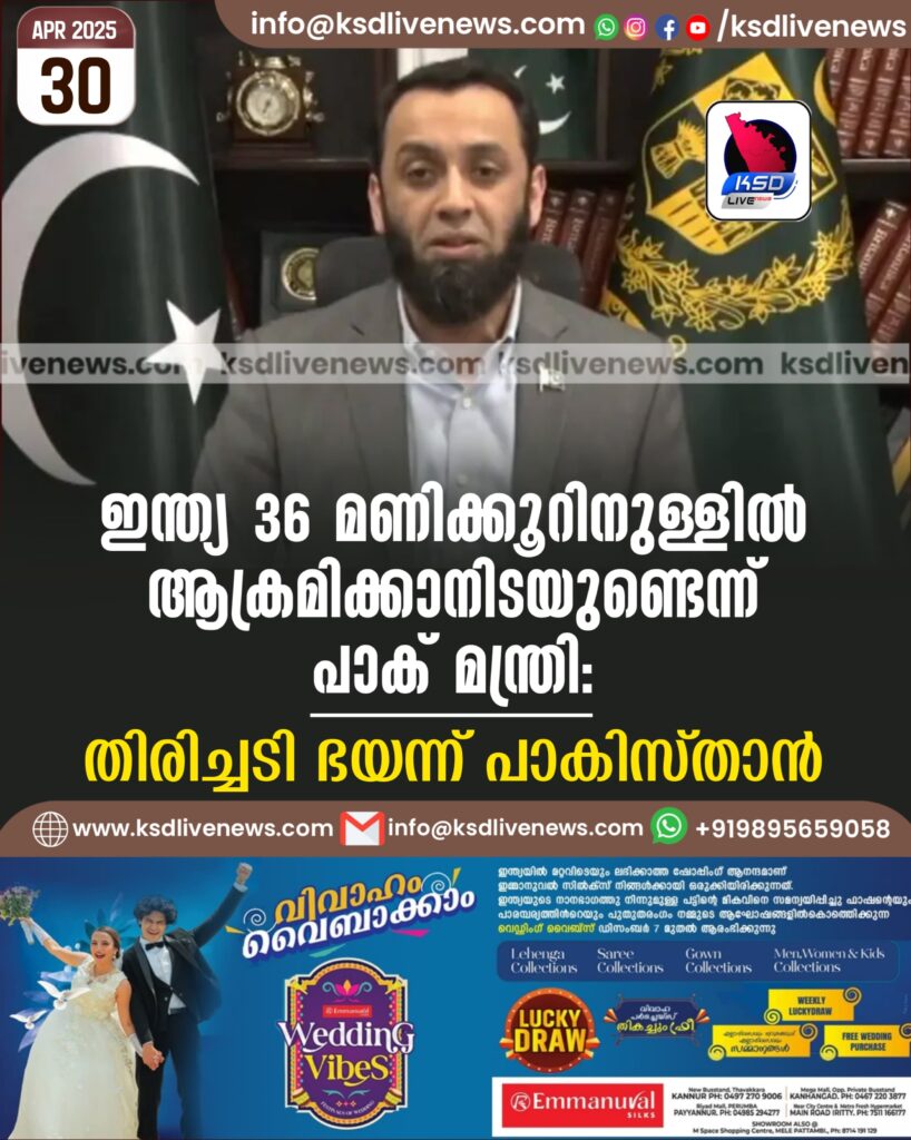 ഇന്ത്യ 36 മണിക്കൂറിനുള്ളില് ആക്രമിക്കാനിടയുണ്ടെന്ന് പാക് മന്ത്രി; തിരിച്ചടി ഭയന്ന് പാകിസ്താന്