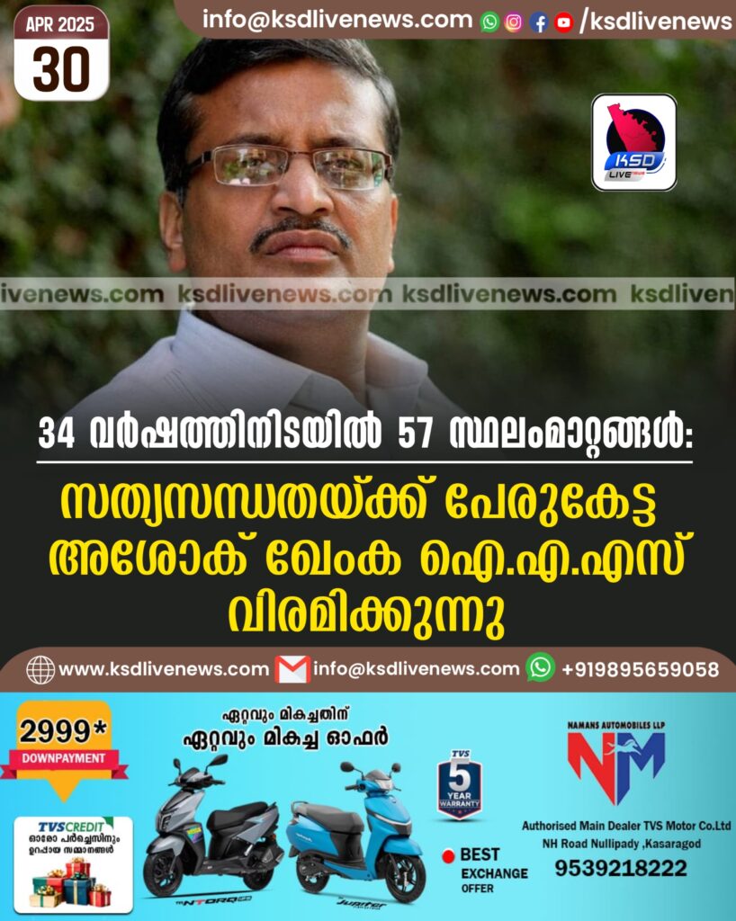 34 വര്ഷത്തിനിടയില് 57 സ്ഥലംമാറ്റങ്ങള്, സത്യസന്ധതയ്ക്ക് പേരുകേട്ട അശോക് ഖേംക IAS വിരമിക്കുന്നു