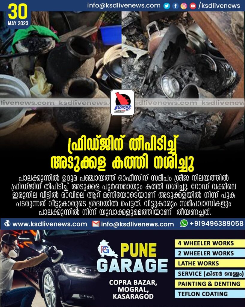 ഫ്രിഡ്ജിന് തീപിടിച്ച് അടുക്കള കത്തി നശിച്ചു