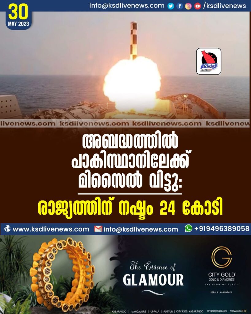 അബദ്ധത്തില് പാകിസ്ഥാനിലേക്ക് മിസൈല് വിട്ടു: രാജ്യത്തിന് നഷ്ടം 24 കോടി