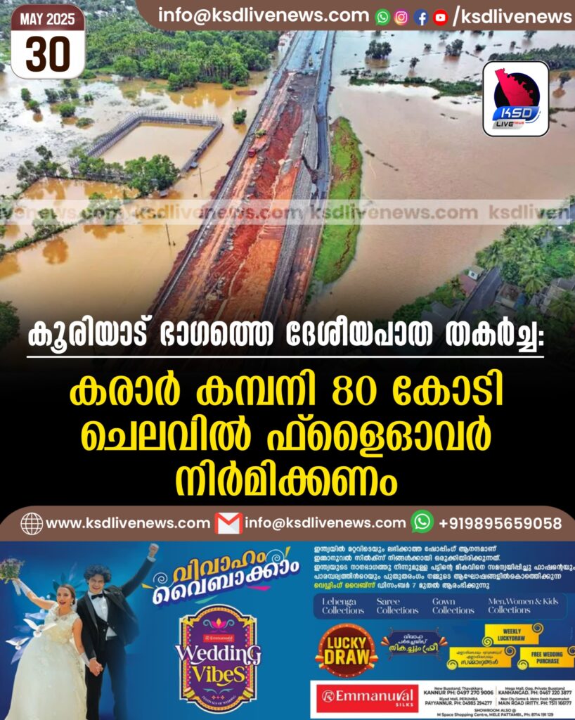കൂരിയാട് ഭാഗത്തെ ദേശീയപാത തകര്‍ച്ച; കരാര്‍ കമ്പനി 80 കോടി ചെലവില്‍ ഫ്ളൈഓവര്‍ നിര്‍മിക്കണം
