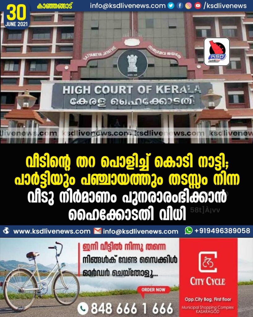 വീടിന്റെ തറ പൊളിച്ച് കൊടി നാട്ടി; പാർട്ടിയും പഞ്ചായത്തും തടസ്സം നിന്ന വീടു നിർമാണം പുനരാരംഭിക്കാൻ ഹൈക്കോടതി വിധി