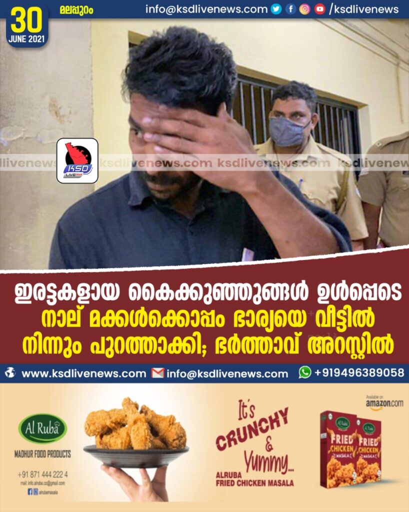ഇരട്ടകളായ കൈക്കുഞ്ഞുങ്ങള് ഉള്പ്പെടെ നാല് മക്കള്ക്കൊപ്പം ഭാര്യയെ വീട്ടില് നിന്നും പുറത്താക്കി; ഭര്ത്താവ് അറസ്റ്റില്