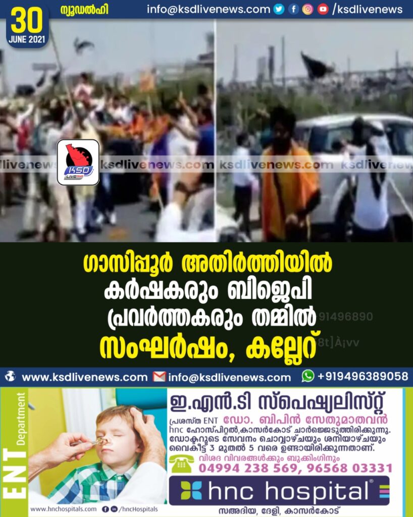ഗാസിപ്പൂർ അതിർത്തിയിൽ കർഷകരും ബിജെപി പ്രവർത്തകരും തമ്മിൽ സംഘർഷം, കല്ലേറ്