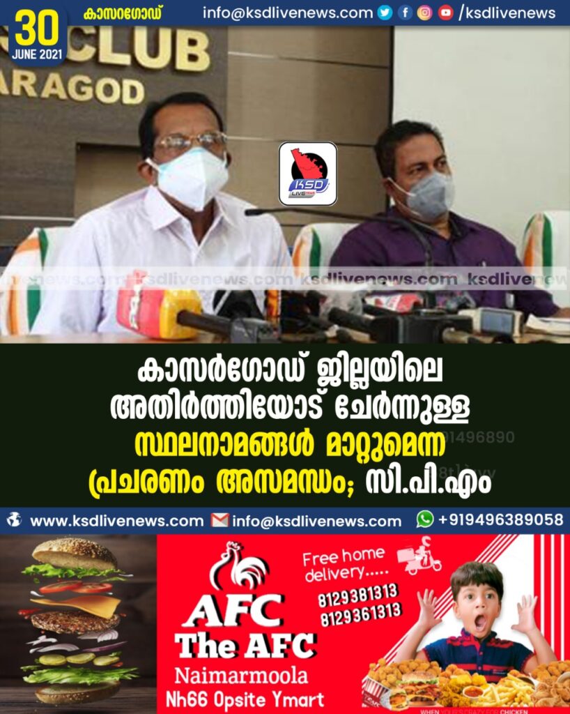 കാസർഗോഡ് ജില്ലയിലെ അതിർത്തിയോട് ചേർന്നുള്ള സ്ഥലനാമങ്ങള് മാറ്റുമെന്ന പ്രചരണം അസമന്ധം- സി.പി.എം