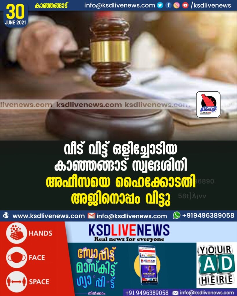 വീട് വിട്ട് ഒളിച്ചോടിയ കാഞ്ഞങ്ങാട് സ്വദേശിനി അഫീസയെ ഹൈക്കോടതി അജിനൊപ്പം വിട്ടു