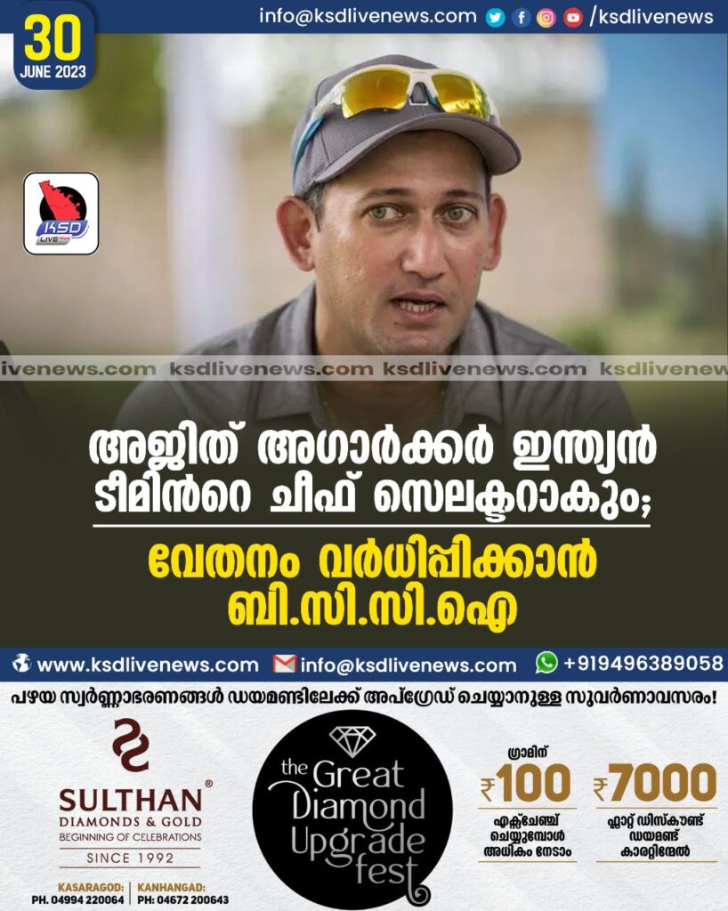 അജിത് അഗാര്ക്കര് ഇന്ത്യന് ടീമിന്റെ ചീഫ് സെലക്ടറാകും; വേതനം വര്ധിപ്പിക്കാന് ബി.സി.സി.ഐ