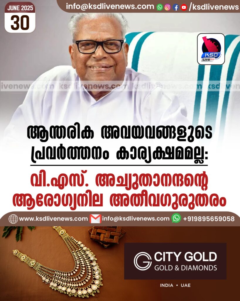 ആന്തരിക അവയവങ്ങളുടെ പ്രവര്ത്തനം കാര്യക്ഷമമല്ല: വി.എസ്. അച്യുതാനന്ദന്റെ ആരോഗ്യനില അതീവഗുരുതരം