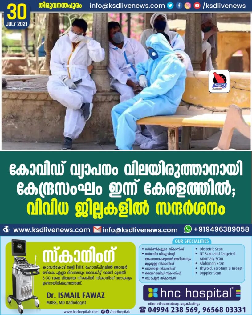 കോവിഡ് വ്യാപനം വിലയിരുത്താനായി കേന്ദ്രസംഘം ഇന്ന് കേരളത്തിൽ; വിവിധ ജില്ലകളിൽ സന്ദർശനം