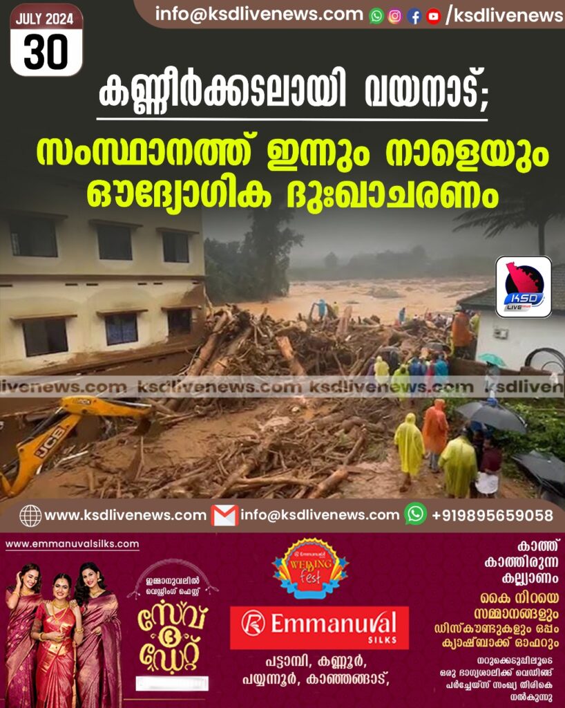 കണ്ണീര്‍ക്കടലായി വയനാട്; സംസ്ഥാനത്ത് ഇന്നും നാളെയും ഔദ്യോഗിക ദുഃഖാചരണം