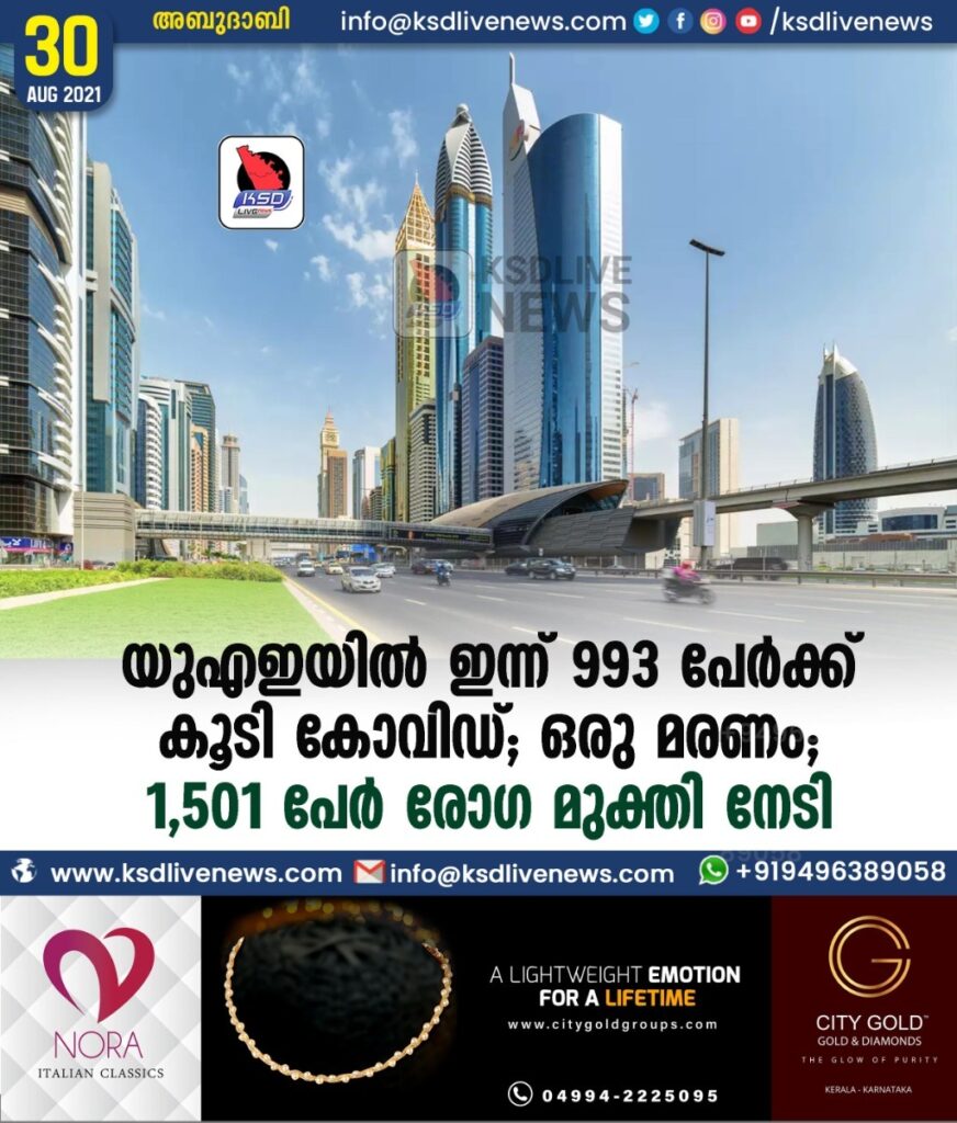 യുഎഇയില് ഇന്ന് 993 പേര്ക്ക് കൂടി കോവിഡ് ; ഒരു മരണം ; 1,501 പേർ രോഗ മുക്തി നേടി