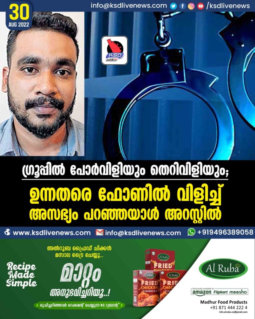ഗ്രൂപ്പിൽ പോർവിളിയും തെറിവിളിയും; ഉന്നതരെ ഫോണിൽ വിളിച്ച് അസഭ്യം പറഞ്ഞയാൾ അറസ്റ്റിൽ