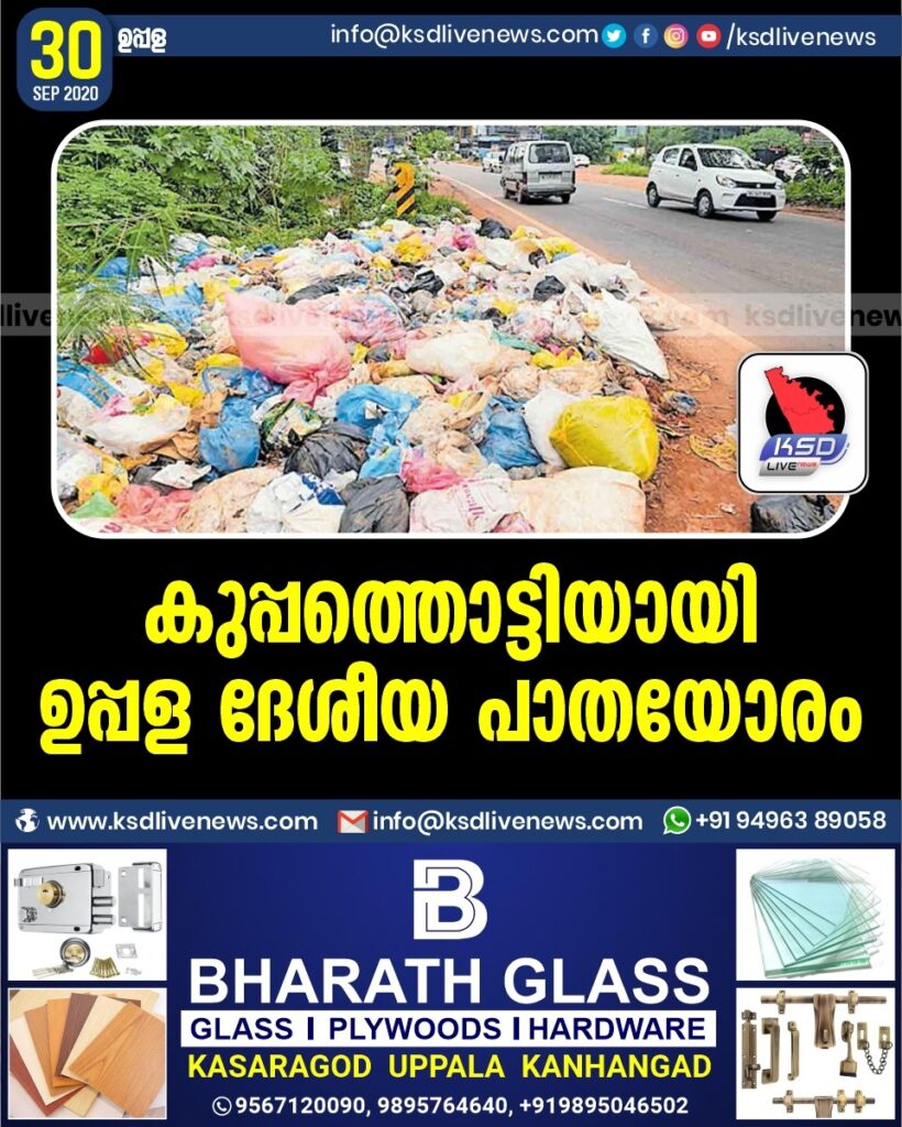 ഉപ്പള • സഞ്ചാരികളെ ക്ഷമിക്കുക , ദൈവത്തിന്റെ സ്വന്തം നാടാണെന്നു കരുതി , കേരളത്തിലേക്ക് എത്തുമ്പോൾ അൽപം ദുർഗന്ധം സഹിക്കണം . സംസ്ഥാനത്തിന്റെ അതിർത്തിയോട് ചേർന്നു കിടക്കുന്ന മഞ്ചേശ്വരം , മംഗൽപാടി , കുമ്പള പഞ്ചായത്തുകളിലൂടെ കടന്നു പോകുന്ന ദേശീയ പാതയോരങ്ങൾ മാലിന്യം തള്ളൽ കേന്ദ്രമാണ്