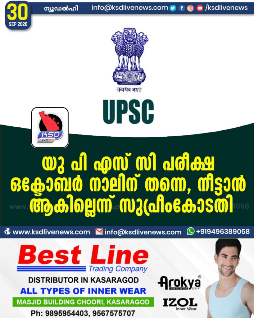 യു പി എസ് സി പരീക്ഷ ഒക്ടോബർ നാലിന് തന്നെ, നീട്ടാൻ ആകില്ലെന്ന് സുപ്രീംകോടതി