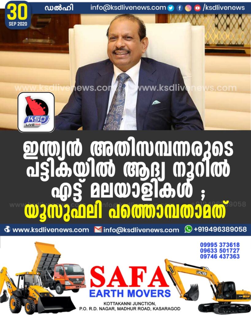 ഇന്ത്യൻ അതിസമ്പന്നരുടെ പട്ടികയിൽ ആദ്യ നൂറിൽ എട്ട് മലയാളികൾ ; യൂസുഫലി പത്തൊമ്പതാമത്