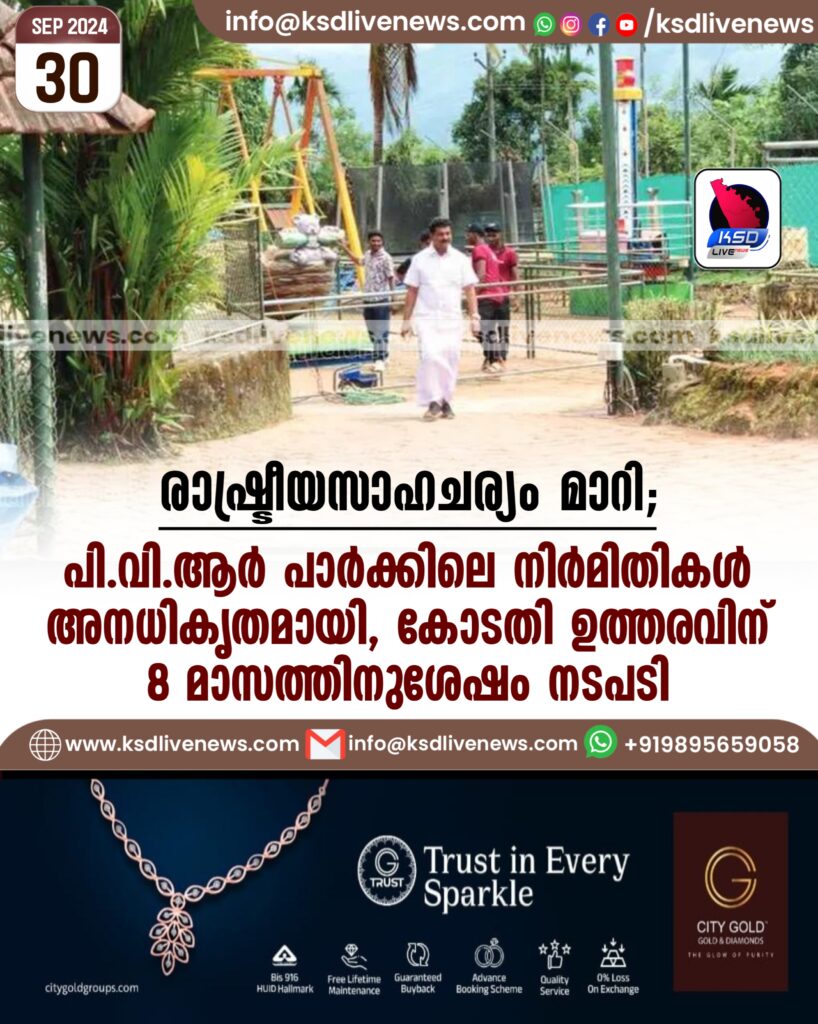 രാഷ്ട്രീയസാഹചര്യം മാറി; PVR പാർക്കിലെ നിർമിതികൾ ‘അനധികൃതമായി’, കോടതി ഉത്തരവിന് 8 മാസത്തിനുശേഷം നടപടി