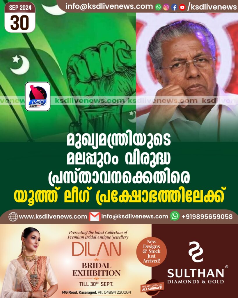 മുഖ്യമന്ത്രിയുടെ മലപ്പുറം വിരുദ്ധ പ്രസ്താവനക്കെതിരെ യൂത്ത് ലീഗ് പ്രക്ഷോഭത്തിലേക്ക്