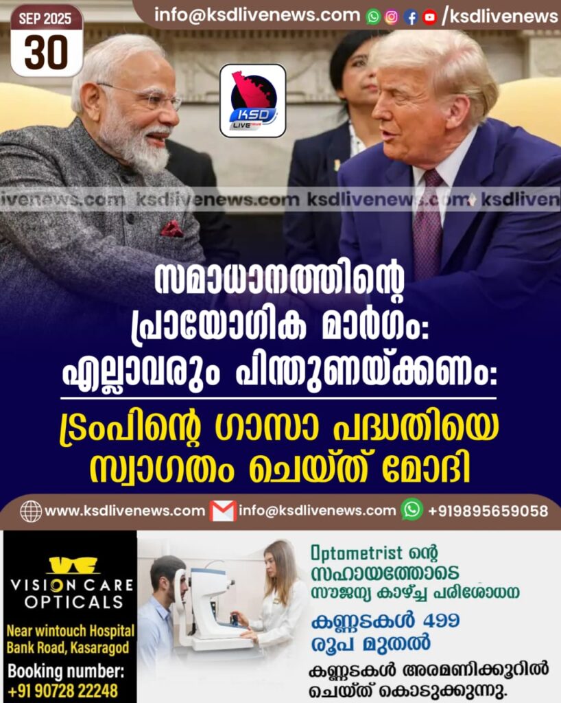 സമാധാനത്തിന്റെ പ്രായോഗിക മാർഗം: എല്ലാവരും പിന്തുണയ്ക്കണം; ട്രംപിന്റെ ഗാസാ പദ്ധതിയെ സ്വാഗതം ചെയ്ത് മോദി