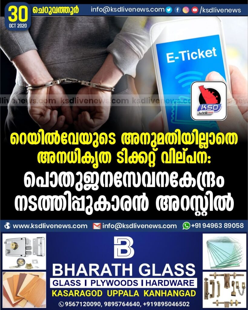 റെയിൽവേയുടെ അനുമതിയില്ലാതെ അനധികൃത ടിക്കറ്റ് വില്പന: പൊതുജനസേവനകേന്ദ്രം നടത്തിപ്പുകാരൻ അറസ്റ്റിൽ