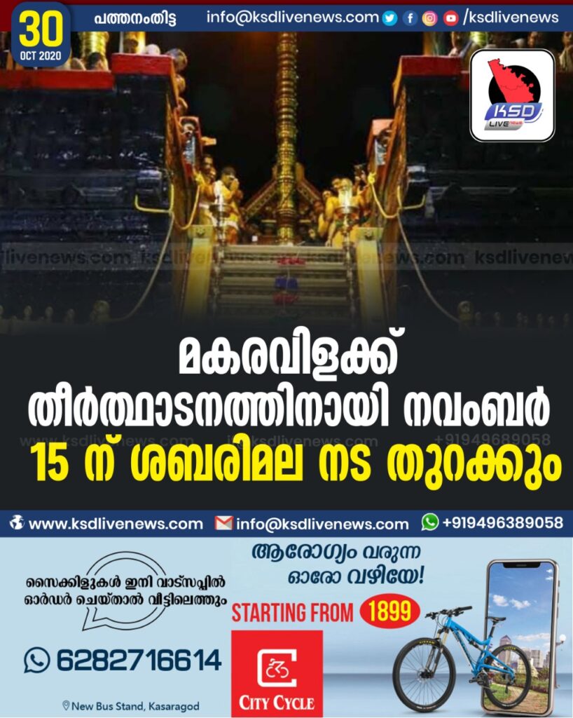 മകരവിളക്ക് തീർത്ഥാടനത്തിനായി നവംബർ 15 ന് ശബരിമല നട തുറക്കും