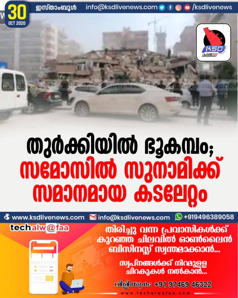 തുര്ക്കിയില് ഭൂകമ്പം; സമോസില് സുനാമിക്ക് സമാനമായ കടലേറ്റം