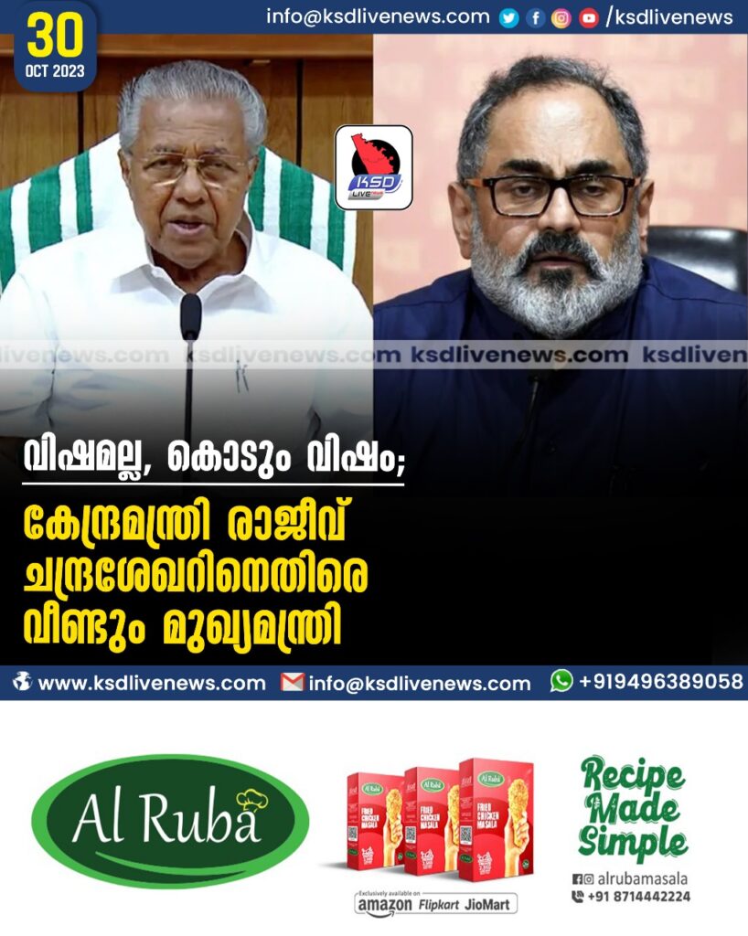 വിഷമല്ല, കൊടും വിഷം’; കേന്ദ്രമന്ത്രി രാജീവ് ചന്ദ്രശേഖറിനെതിരെ വീണ്ടും മുഖ്യമന്ത്രി