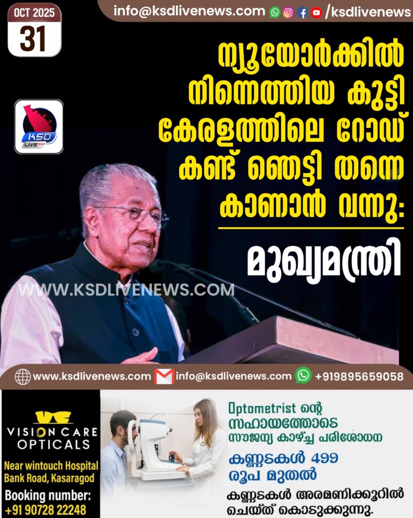 ന്യൂയോർക്കിൽ നിന്നെത്തിയ കുട്ടി കേരളത്തിലെ റോഡ് കണ്ട് ഞെട്ടി തന്നെ കാണാൻ വന്നു: മുഖ്യമന്ത്രി