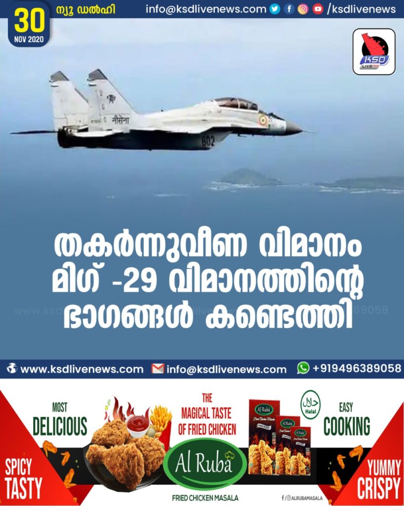തകർന്നുവീണ വിമാനം മിഗ് -29 വിമാനത്തിന്റെ ഭാഗങ്ങൾ കണ്ടെത്തി