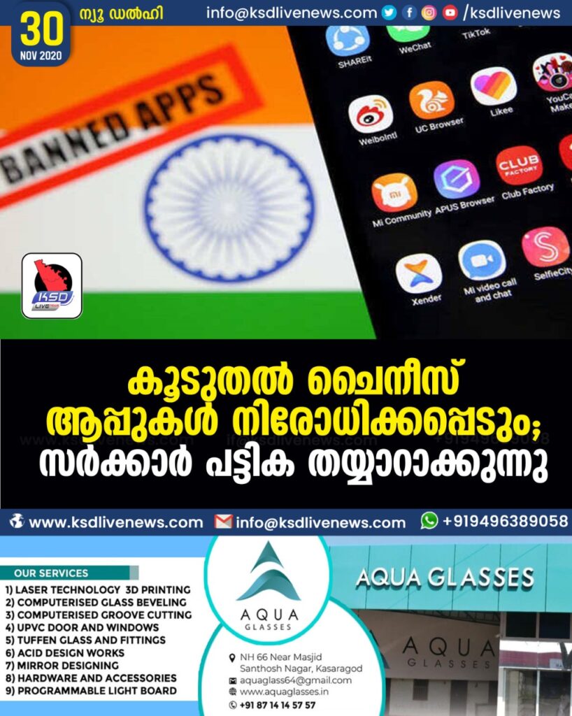കൂടുതല് ചൈനീസ് ആപ്പുകള് നിരോധിക്കപ്പെടും; സര്ക്കാര് പട്ടിക തയ്യാറാക്കുന്നു