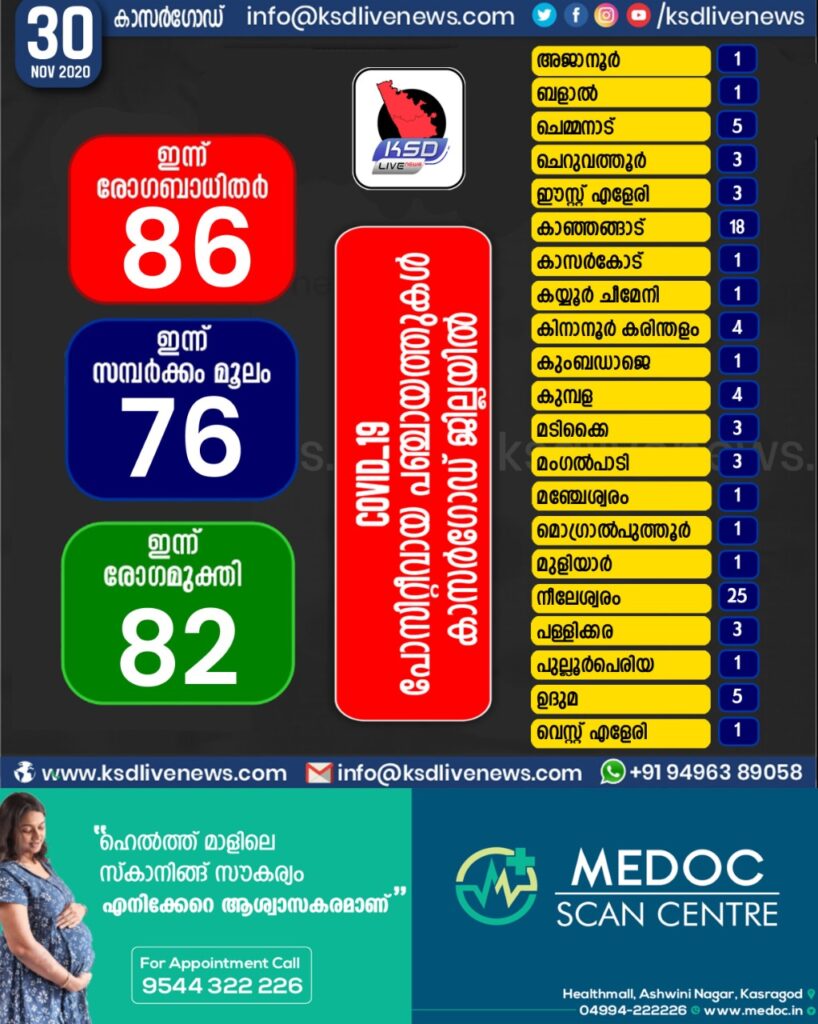 കാസർഗോഡ് ജില്ലയിൽ ഇന്ന് കോവിഡ് പോസിറ്റീവായവരുടെ പഞ്ചായത്ത് തിരിച്ചുള്ള സ്ഥിതി വിവര കണക്ക്