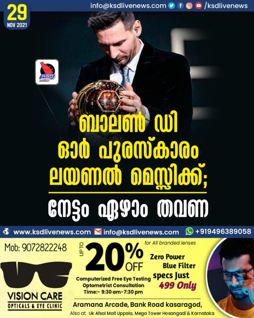 ഏറ്റവും കൂടുതല് ബാലണ് ഡി ഓര് പുരസ്കാരം സ്വന്തമാക്കിയ താരവും മെസ്സിയാണ്. നേരത്തേ 2009, 2010, 2011, 2012, 2015, 2019 വര്ഷങ്ങളിലും മെസ്സി ബാലണ് ഡി ഓര് നേടിയിട്ടുണ്ട്. അഞ്ച് ബാലണ് ഡി ഓര് സ്വന്തമാക്കിയ പോര്ച്ചുഗീസ് താരം ക്രിസ്റ്റ്യാനോ റൊണാള്ഡോയാണ് തൊട്ടു പിന്നില്.