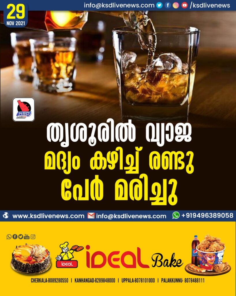 തൃശൂരില് വ്യാജ മദ്യം കഴിച്ച് രണ്ടു പേര് മരിച്ചു