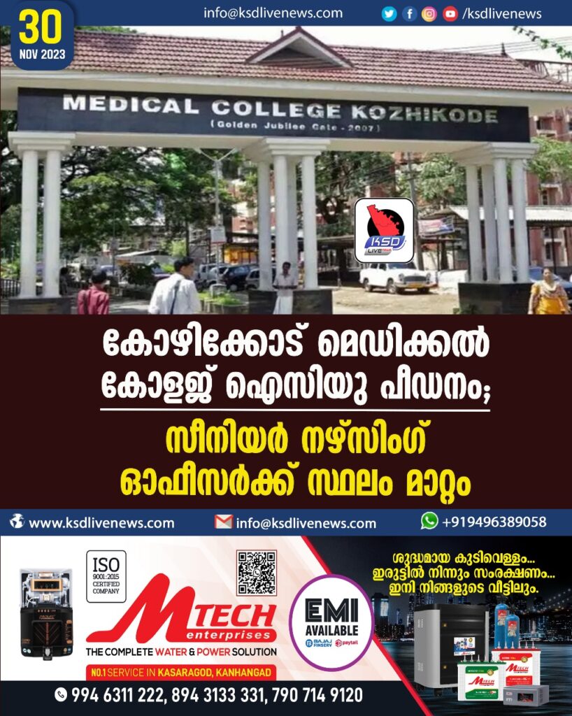 കോഴിക്കോട് മെഡിക്കല് കോളജ് ഐസിയു പീഡനം; സീനിയര് നഴ്സിംഗ് ഓഫീസര്ക്ക് സ്ഥലം മാറ്റം