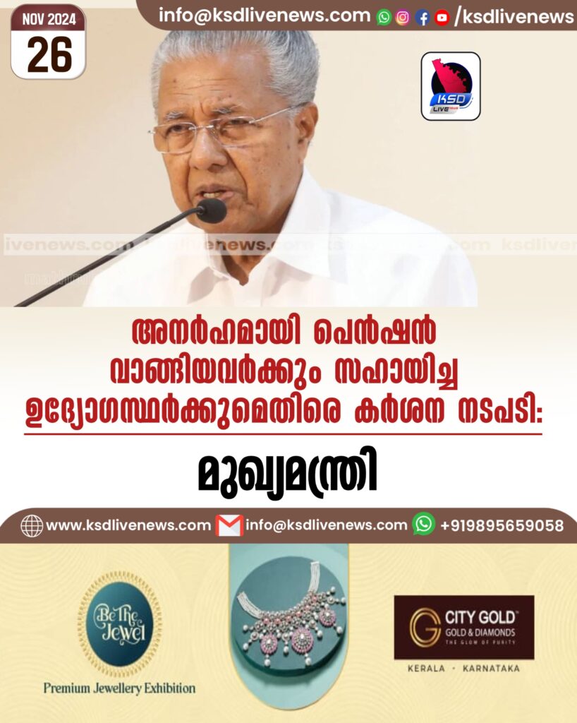 അനര്ഹമായി പെന്ഷന് വാങ്ങിയവര്ക്കും സഹായിച്ച ഉദ്യോഗസ്ഥര്ക്കുമെതിരെ കര്ശന നടപടി- മുഖ്യമന്ത്രി