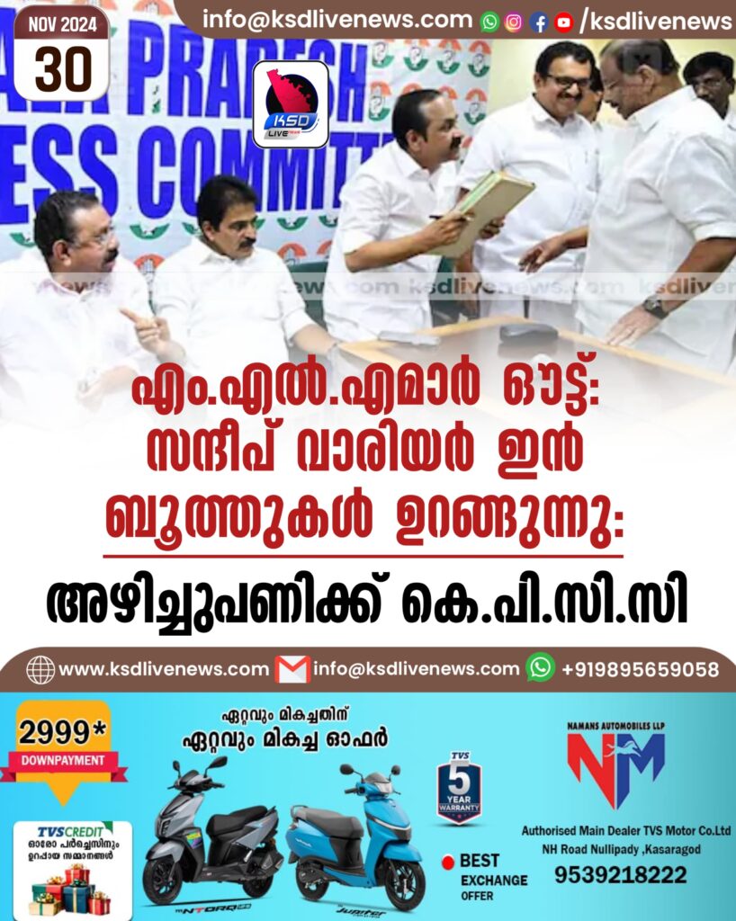 എംഎൽഎമാർ ‘ഔട്ട്’; സന്ദീപ് വാരിയർ ‘ഇൻ’ ! ബൂത്തുകൾ ഉറങ്ങുന്നു: അഴിച്ചുപണിക്ക് കെപിസിസി