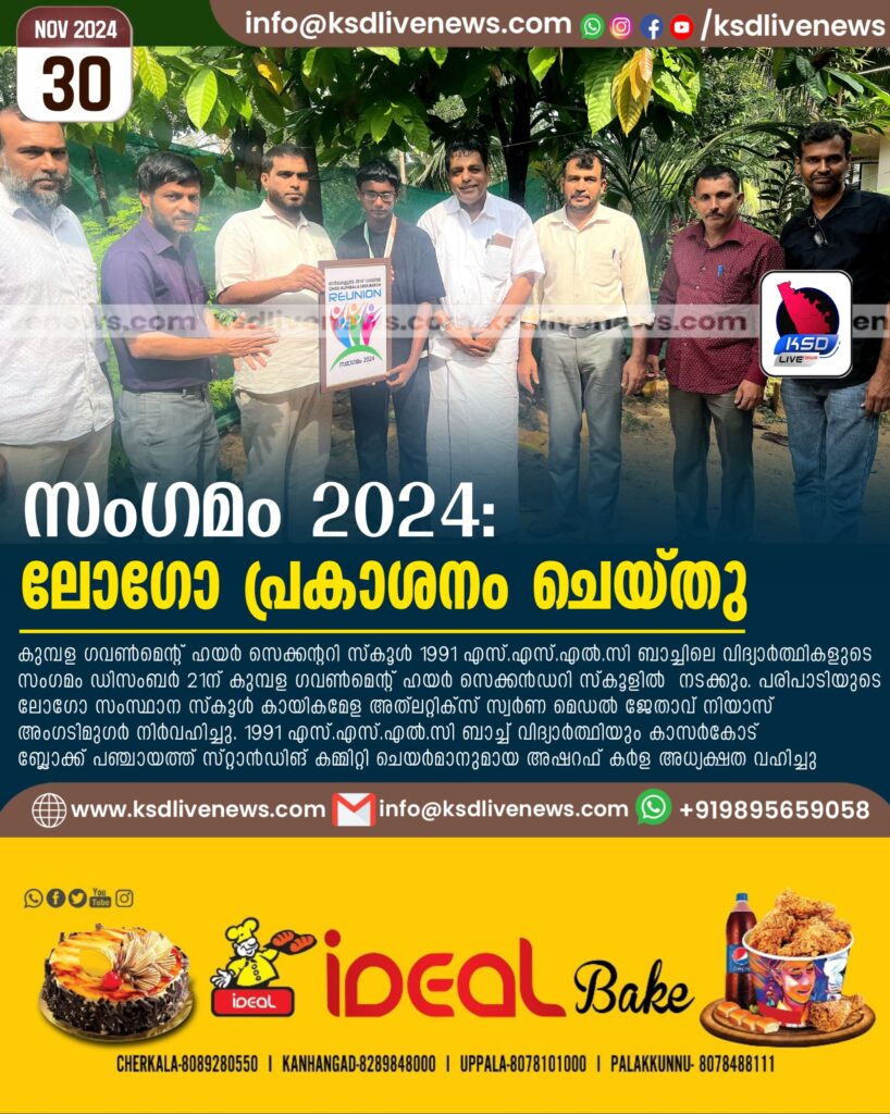 കുമ്പള: കുമ്പള ഗവൺമെൻ്റ് ഹയർ സെക്കന്ററി സ്കൂൾ 1991 എസ് എസ് എൽ സി ബാച്ചിലെ വിദ്യാർത്ഥികളുടെ സംഗമം ഡിസംബർ 21 ന് കുമ്പള ഗവൺമെൻ്റ് ഹയർ സെക്കൻഡറി സ്കൂളിൽ നടക്കും. പരിപാടിയുടെ ലോഗോ സംസ്ഥാന സ്കൂൾ കായികമേള അത്ലറ്റിക്സ് സ്വർണ മെഡൽ ജേതാവ് നിയാസ് അംഗടിമുഗർ നിർവഹിച്ചു. 1991 എസ് എസ് എൽ സി ബാച്ച് വിദ്യാർത്ഥിയും കാസർകോട് ബ്ലോക്ക് പഞ്ചായത്ത് സ്റ്റാൻഡിങ് കമ്മിറ്റി ചെയർമാനുമായ അഷറഫ് കർള അധ്യക്ഷത വഹിച്ചു.